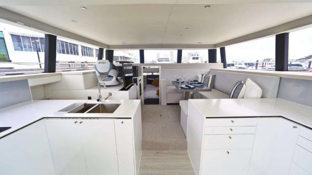 And thanks to an onboard desalination system capable of producing 792 gallons (3,000 liters) of freshwater daily, you could theoretically live aboard indefinitely — limited only by your stock of tonic and limes.