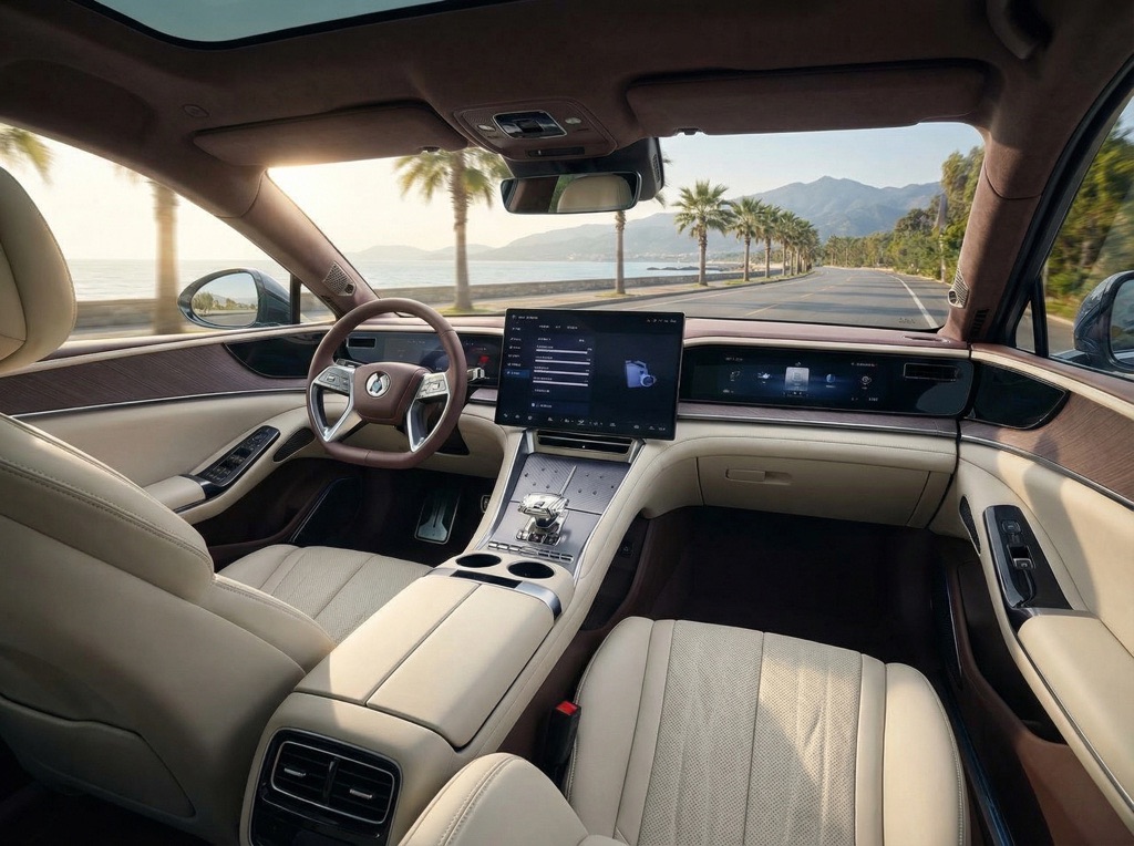 Inside, the cabin remains a showcase of technology and luxury. The dual refrigerator system (front and rear) and party tricks like “crab walk” (15-degree sideways movement) and “compass turn” (on-the-spot rotation) remain, offering both practical functionality and showroom appeal. These features leverage BYD’s Yi Sanfang system, which integrates independent motors and dual-motor rear-wheel steering for a 4.62-meter turning radius.