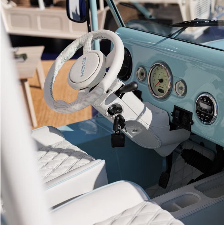 You won’t be overtaking anything on the highway unless it has pedals, but on coastal roads, resort paths, or quiet neighborhoods, the Electric MOKE feels right at home.