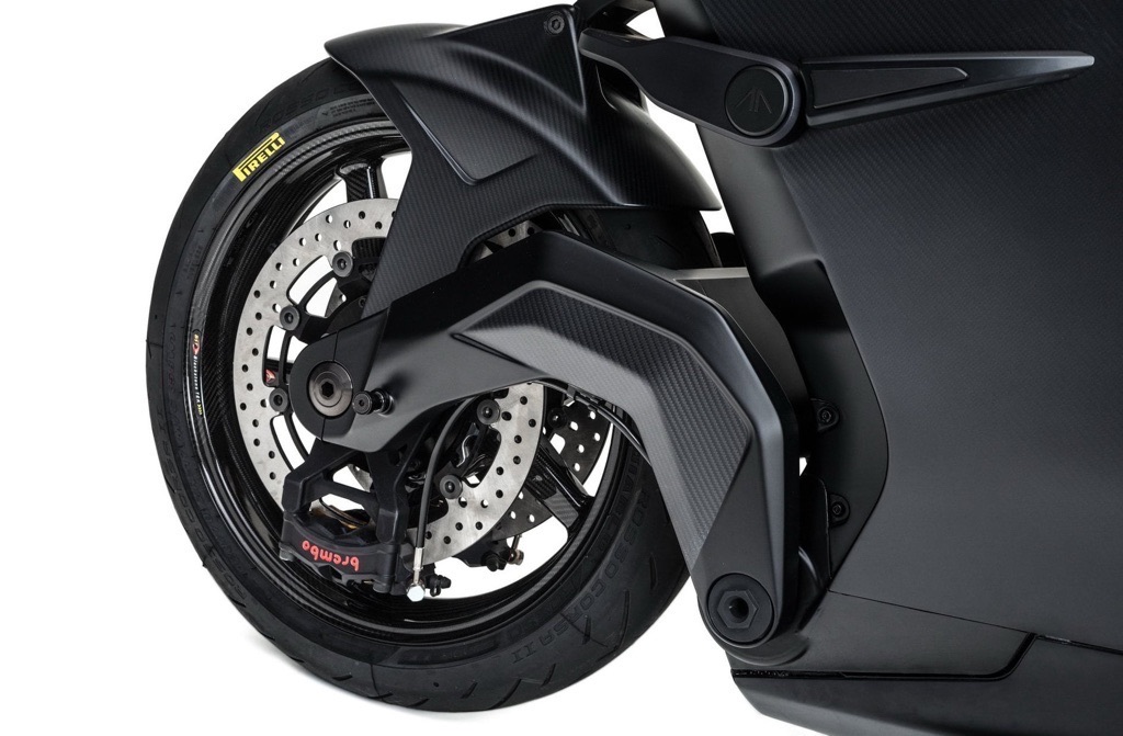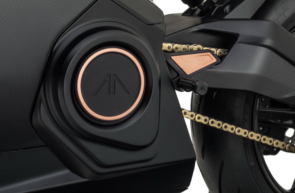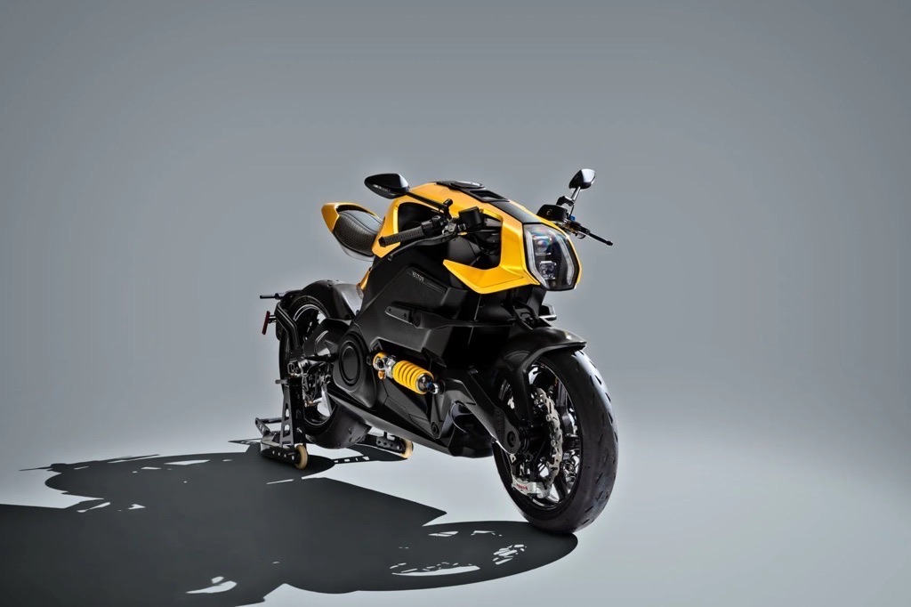 No traditional frame: the battery itself acts as the structural core, reducing weight and increasing rigidity.