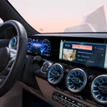 MBUX is the advanced infotainment with all-digital displays, Zero Layer interface, voice control, and optional Burmester audio with Dolby Atmos, updated for 2024 with improved sensors and AI assistance.